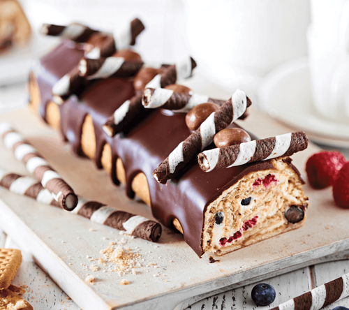 Sastāvdaļas: KVIEŠU milti, cukurs, SVIESTS, iebiezināts PIENS ar cukuru (pasterizēts PIENS, cukurs, LAKTOZE), invertcukura sīrups, OLU pulveris, irdinātāji: E503, E500, SOJAS milti, sāls, konservants: nātrija METABISULFĪTS; aromatizētājs. Produkts var saturēt ZEMESRIEKSTUS, citus RIEKSTUS un SEZAMU. 100g produkta satur: Enerģētiskā vērtība - 1746/414kJ/kcal,Tauki/tostarp piesātinātās taukskābes:9g/5.7 Ogļhidrāti/tostarp cukuri:73g/18g,Olbaltumvielas:8.9g, ,Sāls 1.1g. Ražots Polijā pēc SIA "Orkla Latvija" pasūtījuma.